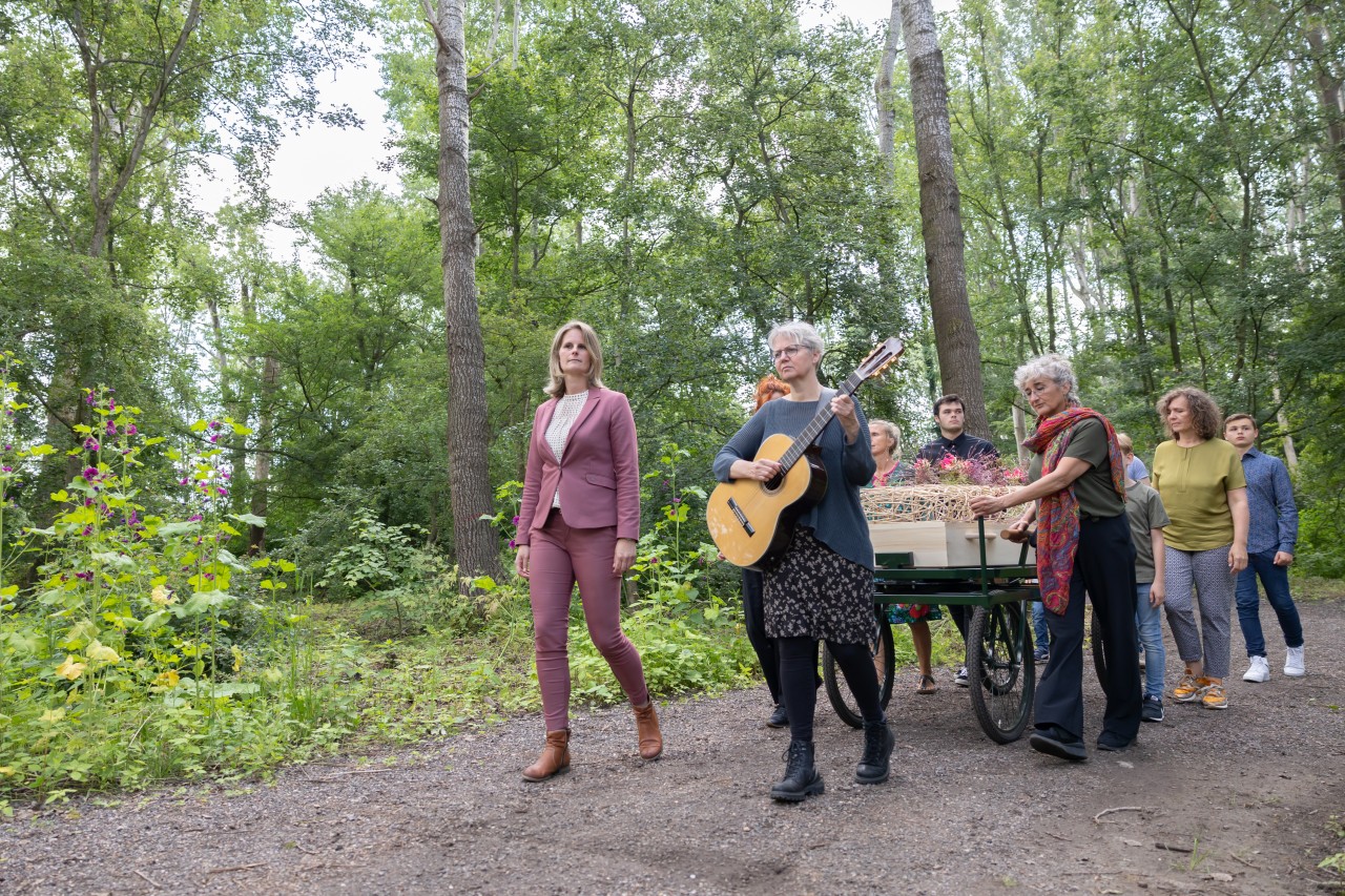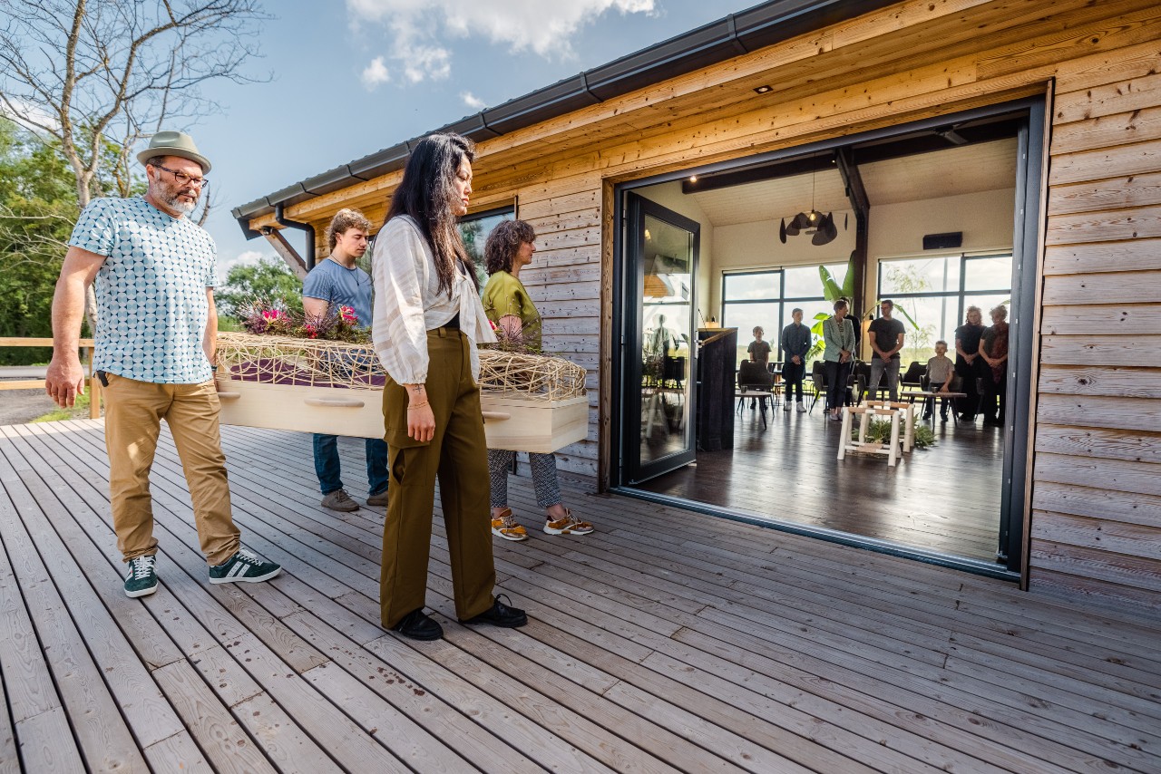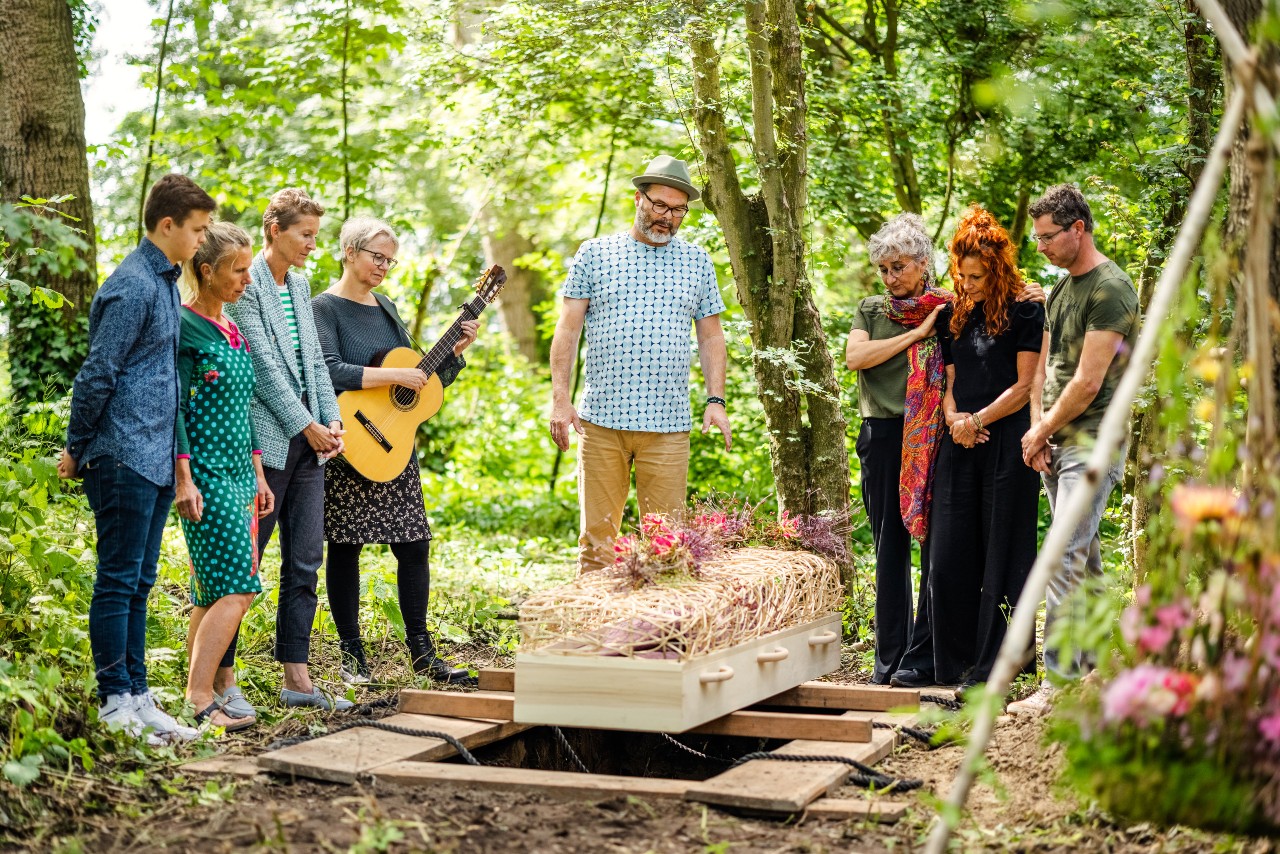De nagespeelde groene uitvaart zal volgend jaar nog een keer plaatsvinden op Zomerlanden. U kunt zich dan weer opgeven om hierbij aanwezig te zijn. Uiteraard zullen we dan weer andere opties laten zien. We krijgen regelmatig vragen van bezoekers over de invulling van een natuurbegrafenis. We hopen dat u met deze uitvaart in scène heeft kunnen zien wat er kan en eventueel mogelijk is op een natuurbewuste en persoonlijke uitvaartbijeenkomst.