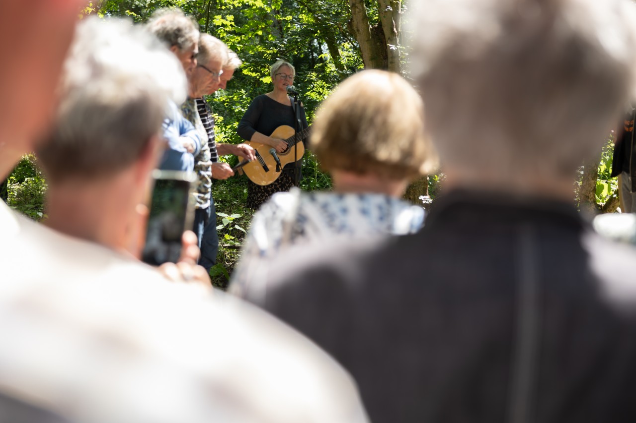 Bloemen, maar ook muziek zijn vaak een onmisbaar, maar vooral een heel persoonlijk onderdeel van een afscheid. Bloemist Frank Schraper en Claudia Reijnen van Plukhoek Mookhoek sloegen de handen ineen om met vers geplukte bloemen een bloemstuk te creëren tijdens de ‘ceremonie’. Zangeres Martine van Wensveen, verzorgde met zang en begeleiding “Troostmuziek’ tijdens de ceremonie, maar ook tijdens de grafloop en bij het graf. De middag werd afgesloten met een samenzijn in de ceremonieruimte, zoals ook vaak gebeurt bij een uitvaartbijeenkomst.